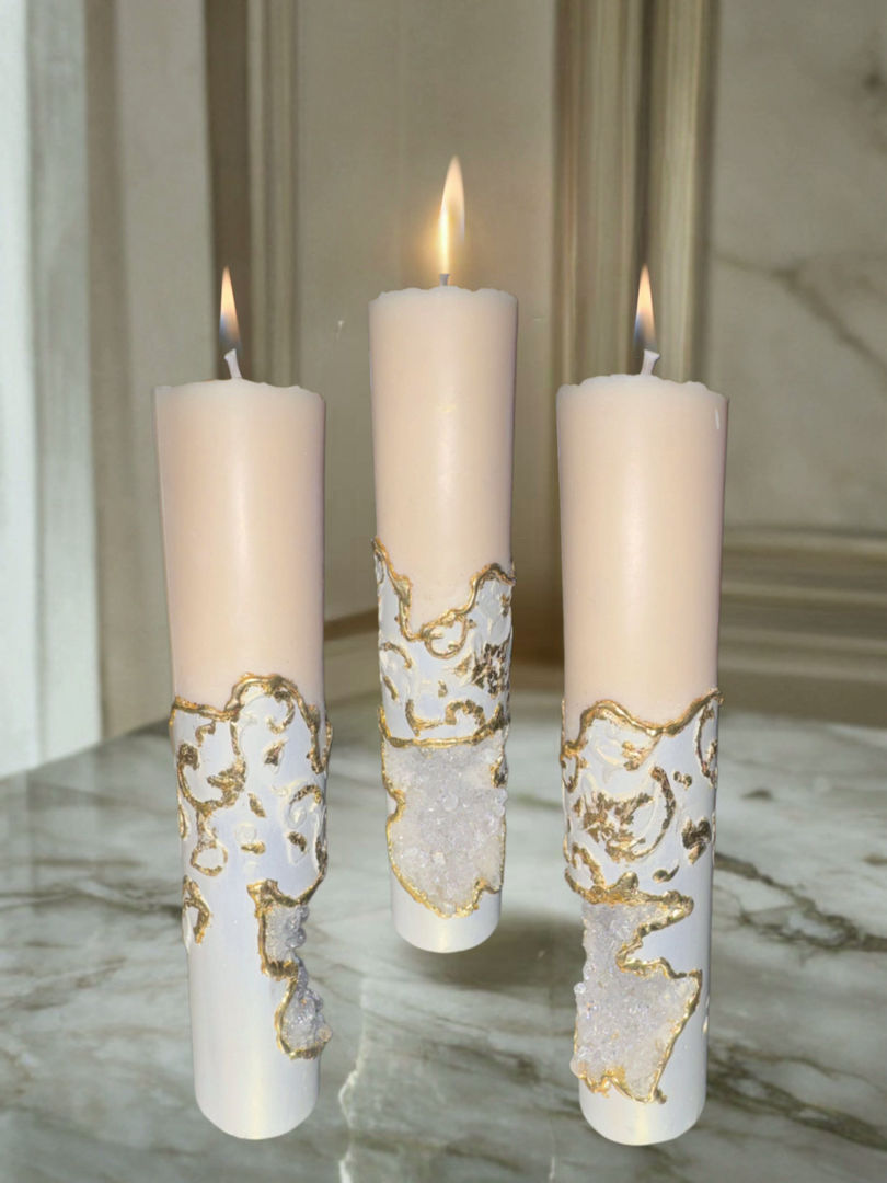 Baroque: White and Gold Ethereal Crystal Candle-MADE TO ORDER